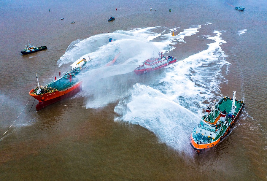 Sáng 17/1, Ban Chỉ đạo diễn tập phương án chữa cháy, cứu nạn cứu hộ – UBND thành phố tổ chức diễn tập phương án chữa cháy và cứu nạn, cứu hộ phối hợp nhiều lực lượng tại Công ty TNHH Cầu cảng Euro, thuộc Khu công nghiệp Deep C Đình Vũ, quận Hải An.