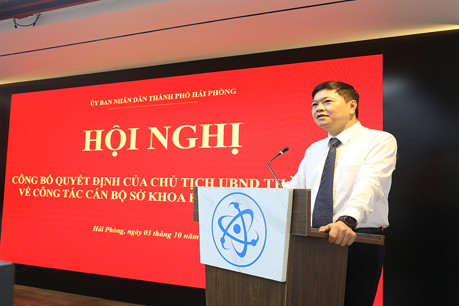 Sáng 3/10, UBND thành phố tổ chức Hội nghị công bố Quyết định của Chủ tịch UBND thành phố về việc điều động và bổ nhiệm Phó Giám đốc Sở Khoa học và Công nghệ. Phó Chủ tịch UBND thành phố Hoàng Minh Cường chủ trì Hội nghị.