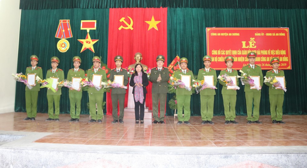 Công an thành phố cũng quyết định điều động 11 cán bộ, chiến sĩ CAH An Dương đến nhận công tác và đảm nhiệm chức danh công an viên tại Công an xã An Đồng và Công an xã Hồng Phong, trong đó 8 đồng chí về công tác tại Công an xã An Đồng; 3 đồng chí về công tác tại Công an xã Hồng Phong.