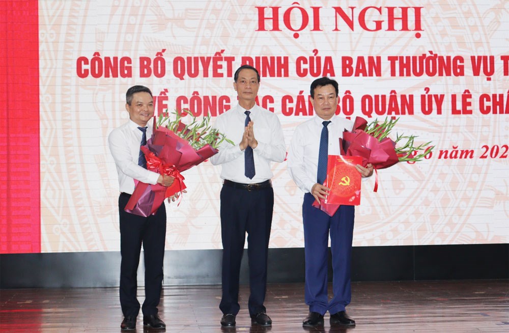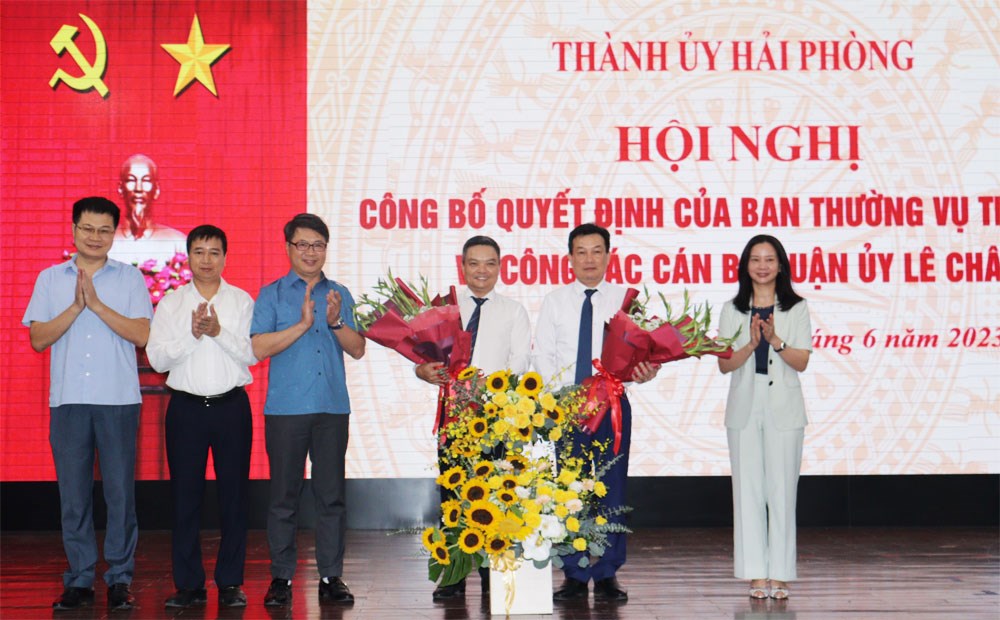 Trao Quyết định và tặng hoa chúc mừng đồng chí Nguyễn Hoàng Linh và đồng chí Nguyễn Văn Phiệt, đồng chí Đỗ Mạnh Hiến, Phó Bí thư Thường trực Thành ủy chúc mừng hai đồng chí được nhận nhiệm vụ trên cương vị công tác mới và đề nghị các đồng chí trên cương vị công tác mới tiếp tục học hỏi, kế thừa những phong trào, kết quả đã đạt được, tiếp tục nỗ lực phấn đấu, rèn luyện để hoàn thành xuất sắc các nhiệm vụ được giao. Phó Bí thư Thường trực Thành ủy ghi nhận và đánh giá cao đồng chí Nguyễn Văn Phiệt trong thời gian công tác tại quân Lê Chân đã có nhiều đóng góp quan trọng đối với sự phát triển của quận.