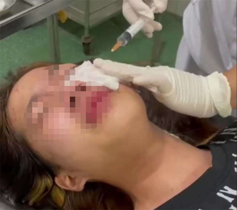 Sau khi gây ra sự việc nhóm nam thanh niên nhanh chóng lên xe bỏ đi. Nữ sinh T.V. được người nhà đưa đi cấp cứu tại bệnh viện đa khoa quận Đồ Sơn với thương tích vùng mặt, trong đó cả 2 mắt đều bị hơi cay tổn thương do hơi cay.