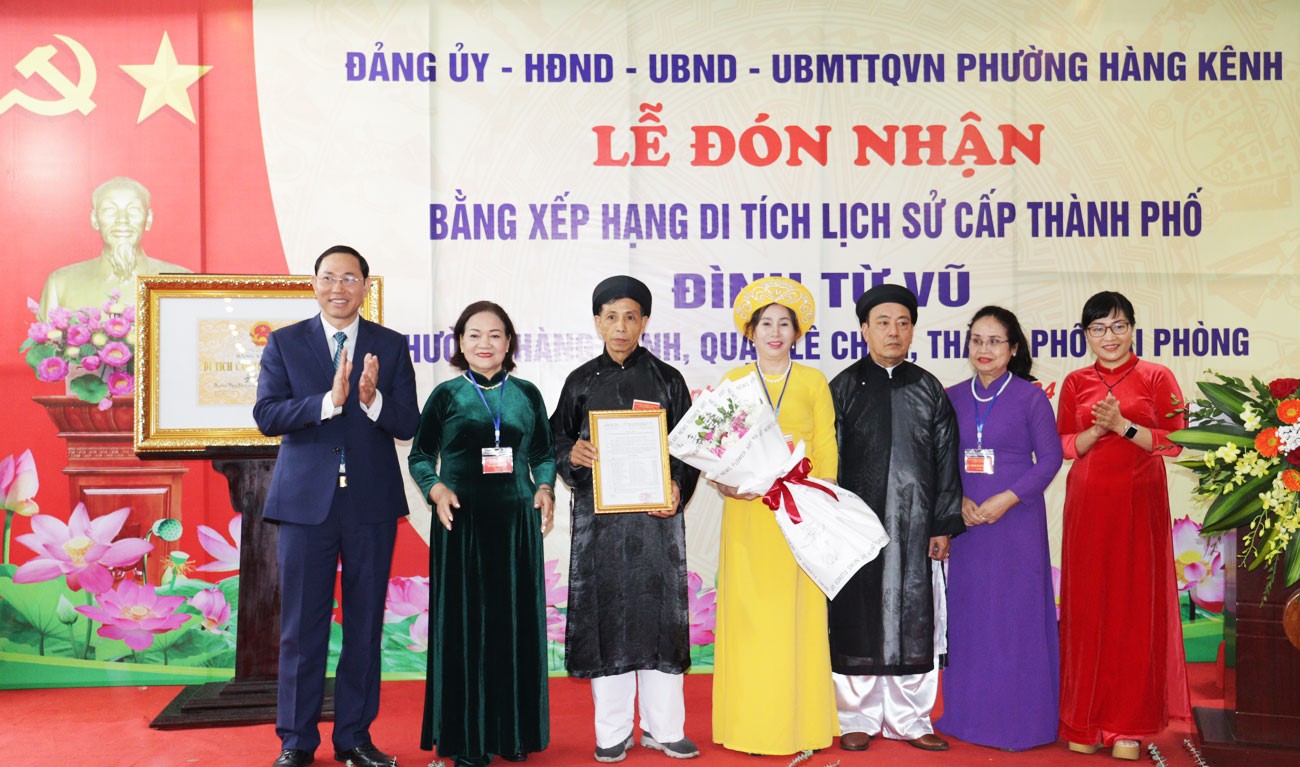 Sáng 27/2, phường Hàng Kênh, quận Lê Chân tổ chức Lễ đón nhận Bằng xếp hạng Di tích lịch sử cấp thành phố Đình Từ Vũ. Tới dự có các đồng chí: Lê Khắc Nam, Phó Chủ tịch UBND thành phố; Phạm Xuân Thanh, Bí thư Đảng ủy Khối các cơ quan thành phố; Trần Thu Hương, Bí thư Quận ủy Lê Chân cùng lãnh đạo Sở Văn hóa và Thể thao, quận Lê Chân và đông đảo nhân dân địa phương.