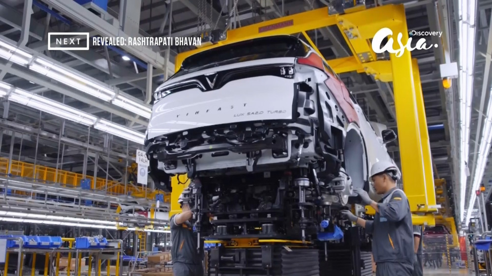 Discovery đã sử dụng hơn nửa thời gian phóng sự để dành riêng cho nhà máy ô tô VinFast tại Hải Phòng, nơi có dây chuyền sản xuất ô tô được tự động hóa gần như hoàn toàn.