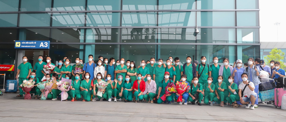 Đón đoàn tại sân bay, đồng chí Nguyễn Tiến Sơn, Phó Giám đốc Sở Y tế đã có lời chúc mừng và động viên thăm hỏi tới 120 cán bộ, y, bác sỹ trong đoàn công tác đã tình nguyện lên đường tham gia chống dịch tại thành phố Hồ Chí Minh. Thành viên của đoàn đã cùng chung sức, đồng lòng với tinh thần cao nhất, hoàn thành xuất sắc nhiệm vụ được giao, được Bộ Y tế và thành phố Hồ Chí Minh ghi nhận và đánh giá cao. Ngành Y tế Hải Phòng rất tự hào về các đồng chí.