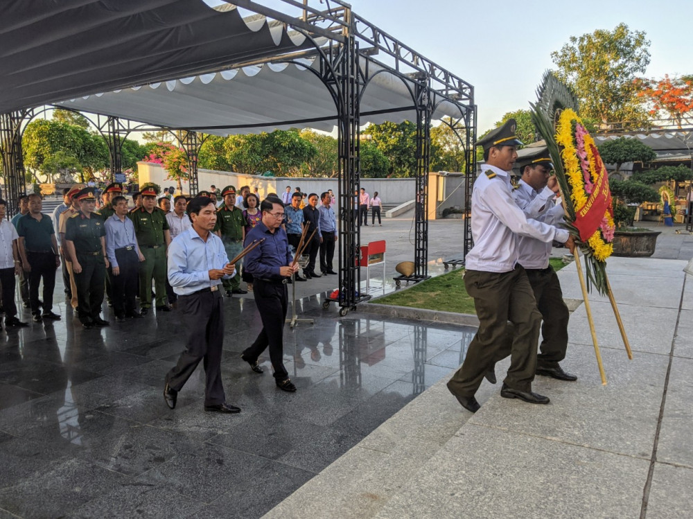 Vòng hoa của Đoàn mang dòng chữ “Thành ủy, HĐND, UBND, Ủy ban MTTQ Việt Nam thành phố Hải Phòng đời đời nhớ ơn các anh hùng liệt sĩ”. Trong không khí xúc động và thành kính, trước anh linh các liệt sĩ, Đoàn đại biểu cán bộ lãnh đạo thành phố thành kính dâng hương, dâng hoa, bày tỏ lòng biết ơn vô hạn, sự tri ân sâu sắc công lao to lớn của các anh hùng, liệt sĩ đã không tiếc máu xương hy sinh cho sự nghiệp giải phóng dân tộc, thống nhất đất nước.