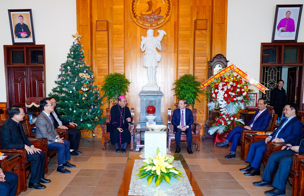Giám mục Nguyễn Văn Bản, Giám mục chính tòa Giáo phận Hải Phòng, kiêm Giám quản Tông tòa Giám mục Giáo phận Buôn Ma Thuột bày tỏ cảm ơn sự quan tâm của lãnh đạo Đảng, Nhà nước và lãnh đạo thành phố Hải Phòng đã đến thăm, chúc mừng nhân dịp Giáng sinh. Đồng thời khẳng định, thời gian tới sẽ tiếp tục động viên, hướng dẫn đồng bào Công giáo tiếp tục phát huy phương châm sống “tốt đời đẹp đạo”, thực hiện tốt chủ trương, chính sách của Đảng, pháp luật của Nhà nước, tích cực tham gia các phong trào thi đua yêu nước nhằm đóng góp nhiều hơn nữa vào công cuộc xây dựng quê hương, đất nước ngày càng giàu mạnh.