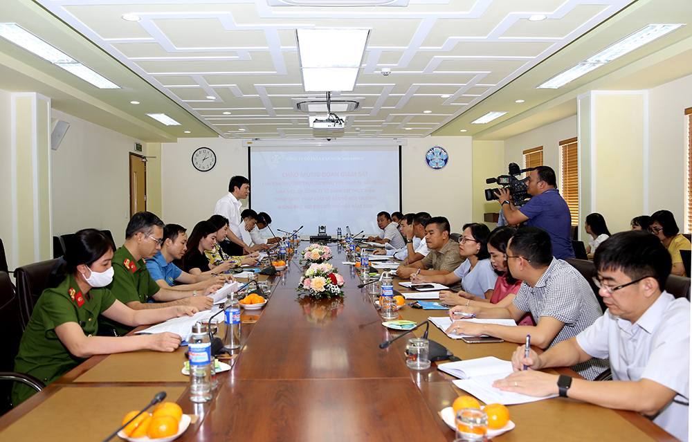 Chiều 23/9, Ban Thường trực Ủy ban MTTQ Việt Nam thành phố tổ chức giám sát việc thực hiện chính sách, pháp luật về bảo vệ môi trường và ứng phó với biến đổi khí hậu tại Công ty Cổ phần Cấp nước Hải Phòng.