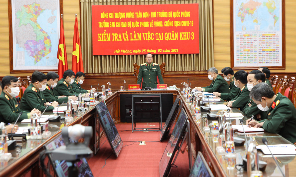 Sáng 25/2, đoàn công tác Bộ Quốc phòng (BQP) do Thượng tướng Trần Đơn, Thứ trưởng BQP, Trưởng Ban chỉ đạo BQP về phòng chống dịch (PCD) COVID-19 làm trưởng đoàn đã tiến kiểm tra công tác PCD COVID-19 tại Quân khu 3.