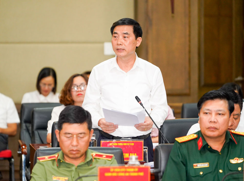 Các đại biểu cũng tham gia ý kiến những giải pháp hoàn thiện tiêu chí xây dựng Trường Chính trị Tô Hiệu thành trường chính trị chuẩn nhằm đáp ứng yêu cầu công tác đào tạo, bồi dưỡng cán bộ. Đồng thời tập trung đánh giá về những kết quả đạt được, bài học kinh nghiệm trong công tác bảo vệ nền tảng tư tưởng của Đảng của Thành ủy Hải Phòng. Trên tinh thần ủng hộ và tạo điều kiện thuận lợi trong việc nâng cao hiệu quả công tác đào tạo cán bộ, các thành viên trong Đoàn công tác thảo luận làm rõ hơn những kiến nghị, đề xuất của Thành ủy Hải Phòng và Trường Chính trị Tô Hiệu.