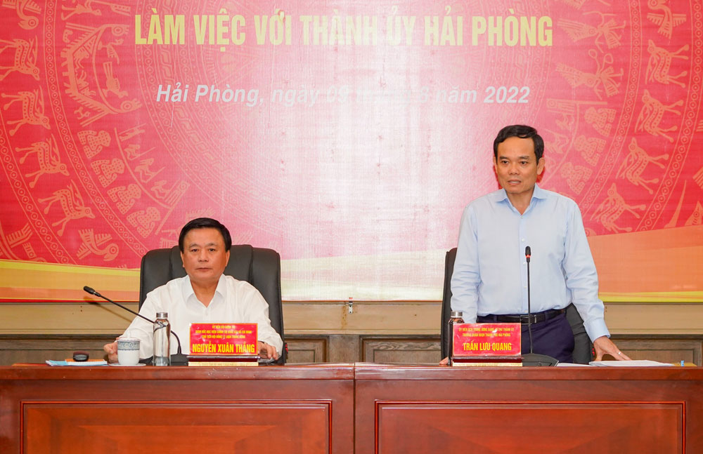 Phát biểu tại cuộc làm việc, đồng chí Trần Lưu Quang, Bí thư Thành ủy thống nhất cao với những ý kiến đánh giá của các thành viên trong Đoàn công tác của Học viện Chính trị quốc gia Hồ Chí Minh trên quan điểm của Thành ủy Hải Phòng là công tác đào tạo, quy hoạch cán bộ cần đi trước một bước. Đây là cơ sở, là nền tảng và điều kiện quan trọng trong chiến lược phát triển kinh tế-xã hội của thành phố. Đồng chí trân trọng cảm ơn đồng chí Nguyễn Xuân Thắng, Giám đốc Học viện Chính trị Quốc gia Hồ Chí Minh và các thành viên trong Đoàn công tác của Học viên đã luôn quan tâm và tạo điều kiện hỗ trợ, giúp đỡ Thành ủy Hải Phòng trong công tác đào tạo, bồi dưỡng cán bộ. Những ý kiến chỉ đạo của đồng chí Nguyễn Xuân Thắng sẽ được Thành ủy Hải Phòng tiếp thu và lĩnh hội đầy đủ để kịp thời cụ thể hóa trong công tác lãnh đạo, chỉ đạo thực hiện các Nghị quyết, Chỉ thị của Trung ương về công tác cán bộ.