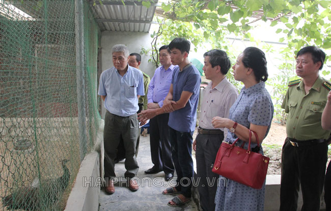 Đoàn tới khảo sát tại Trại nuôi Trần Văn Dũng (nuôi các loài: Công Việt Nam, Gà lôi trắng, Công Ấn Độ, gà lôi hồng tía, gà lôi lam thuộc Phụ lục I của Công ước CITES) tại xã Phục Lễ, huyện Thủy Nguyên. Trại hiện nuôi hơn 100 con công Việt Nam, công Ấn Độ và gà lôi hồng tía, gà lôi lam, gà lôi trắng. Việc nhập mua con giống, chăm nuôi và xuất bán của Trại nuôi cơ bản tuân thủ theo quy định của pháp luật và có sự giám sát của Chi cục Kiểm lâm – Sở Nông nghiệp và Phát triển nông thôn.