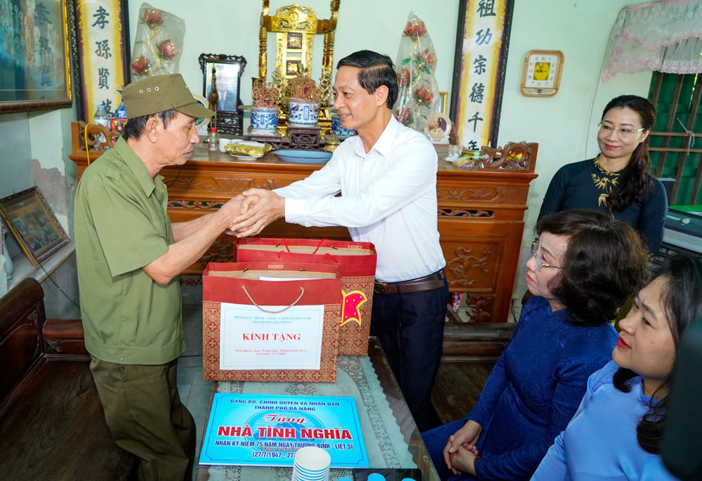 Nhân dịp kỷ niệm 75 năm Ngày Thương binh, liệt sỹ (27/7/1947-27/7/2022), sáng 23/7, Đoàn công tác của Thành ủy-HĐND-UBND-Ủy ban MTTQ Việt Nam thành phố Đà Nẵng do đồng chí Nguyễn Văn Quảng, Ủy viên Trung ương Đảng, Bí thư Thành ủy, Trưởng Đoàn ĐBQH thành phố Đà Nẵng làm Trưởng Đoàn đi thăm, tặng quà gia đình chính sách trên địa bàn thành phố Hải Phòng.