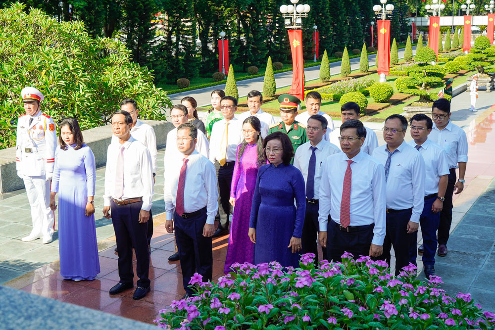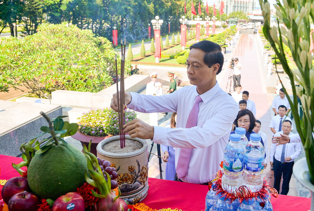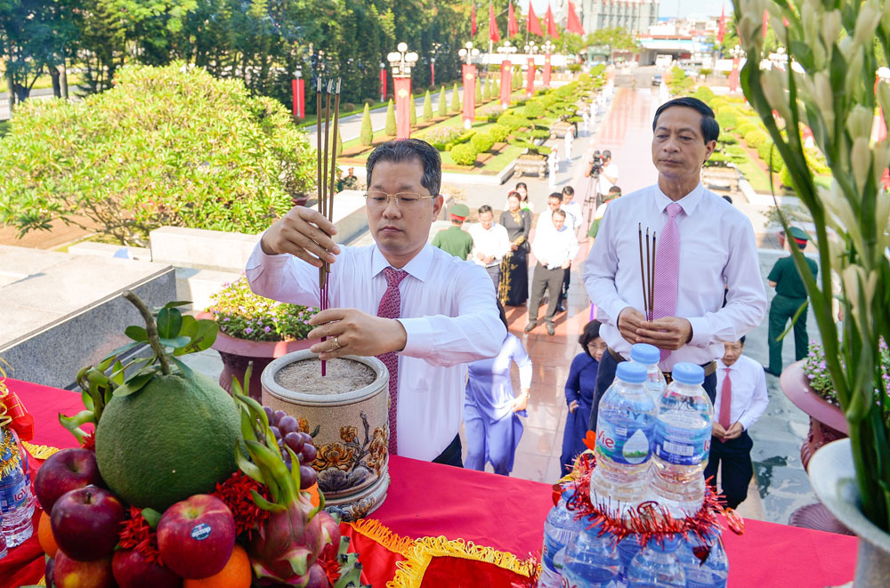 Trong không khí trang nghiêm, Đoàn đại biểu đã thành kính đặt vòng hoa, dâng hương tưởng nhớ, bày tỏ lòng biết ơn sâu sắc trước công lao các Anh hùng liệt sỹ đã chiến đấu, hy sinh vì sự nghiệp cách mạng của Đảng, vì nền độc lập, tự do của Tổ quốc.