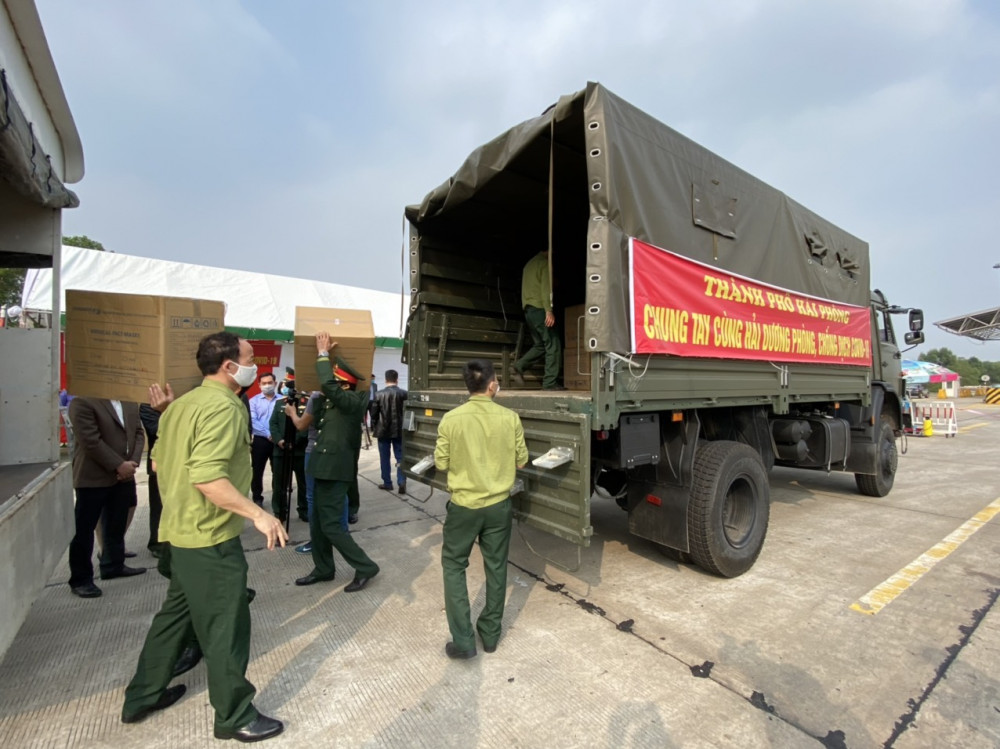 Tại địa điểm trao nhận hỗ trợ là Trạm thu phí đường cao tốc Hà Nội – Hải Phòng, nhánh xuống huyện Gia Lộc, tỉnh Hải Dương, Phó Chủ tịch UBND thành phố Lê Khắc Nam cho biết, sáng nay, Ban Thường vụ Thành ủy Hải Phòng đã họp đột xuất và quyết định hỗ trợ tỉnh Hải Dương 5 tỷ đồng và 500.000 khẩu trang y tế để chung tay cùng Hải Dương phòng chống dịch COVID-19 hiệu quả. Phó Chủ tịch UBND thành phố Hải Phòng khẳng định, Hải Phòng và Hải Dương là hai địa phương có mối quan hệ gần gũi, gắn bó về mọi mặt, Ban Thường vụ Thành ủy – Tỉnh ủy hai địa phương đã có Nghị quyết chung về phối hợp phát triển kinh tế – xã hội. Thành phố Hải Phòng chia sẻ những khó khăn với tỉnh Hải Dương và chúc tỉnh Hải Dương sớm dập tắt được dịch bệnh COVID-19.