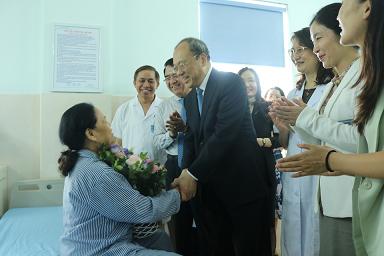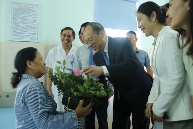 Đồng chí Nguyễn Thành Phát, Tỉnh trưởng tỉnh Vân Nam cùng đoàn công tác đã ân cận thăm hỏi, tặng hoa và động viên các bệnh nhân bị đục thủy tinh thể vừa được phẫu thuật, nằm trong chương trình “Hành trình ánh sáng”.