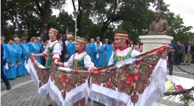 Các tiết mục văn nghệ của người dân thành phố Vlapostok biểu diễn dưới tượng đài Chủ tịch Hồ Chí Minh