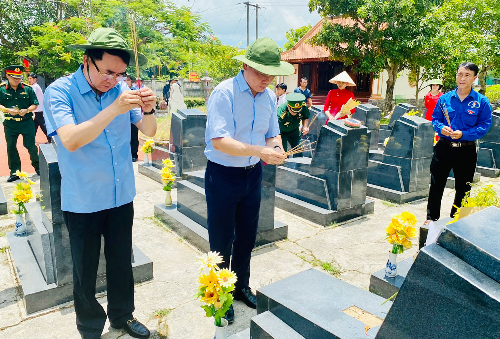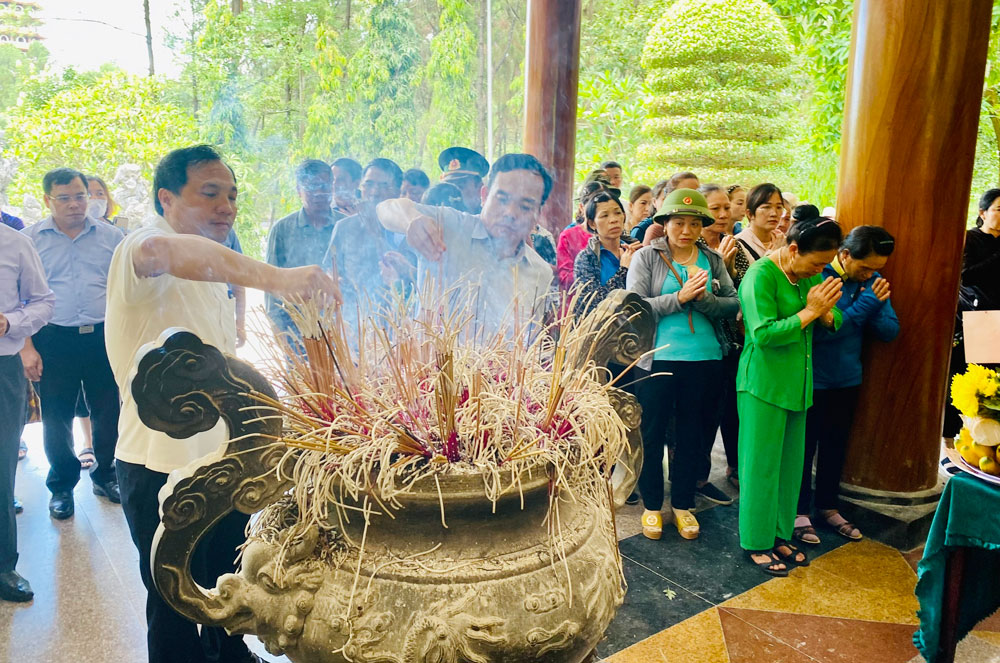 Đoàn đã tới dâng hương Khu di tích lịch sử quốc gia đặc biệt Ngã ba Đồng Lộc, huyện Can Lộc, tỉnh Hà Tĩnh. Tại đây, đồng chí Trần Lưu Quang, Bí thư Thành ủy Hải Phòng và đồng chí Hoàng Trung Dũng, Bí thư Tỉnh ủy Hà Tĩnh cùng các đồng chí trong Đoàn đã kính cẩn đặt vòng hoa tại nhà bia tưởng niệm, nơi ghi danh hơn 4.000 liệt sỹ thanh niên xung phong cả nước. Đoàn cũng xúc động khi thăm lại di tích hố bom trong khuôn viên nghĩa trang, nơi 10 nữ thanh niên xung phong anh dũng hy sinh vào ngày 24/7/1968, làm nên một trang vàng trong lịch sử. Dâng hương, dâng hoa tại mộ phần các Chị, Đoàn dành một phút mặc niệm tưởng nhớ những người con đã hiến trọn tuổi đôi mươi để nối liền mạch máu giao thông giữa tiền tuyến với hậu phương. Tên tuổi của các Chị mãi được nhắc đến như một kỳ tích anh hùng của dân tộc Việt Nam anh hùng.
