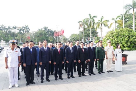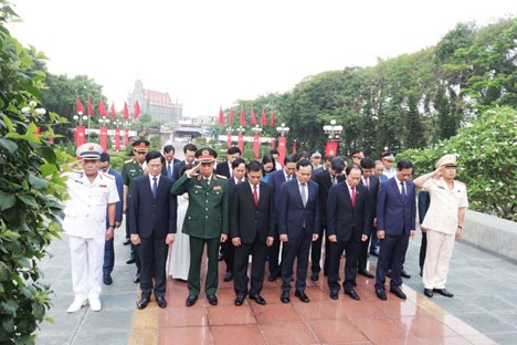 Tại Đài tưởng niệm các Anh hùng liệt sĩ thành phố, trong không khí trang nghiêm thành kính, các đại biểu dành phút mặc niệm tưởng nhớ anh linh các Anh hùng liệt sĩ – những người con ưu tú của dân tộc đã không tiếc xương máu vì độc lập, tự do của Tổ quốc và hạnh phúc của nhân dân. Trước anh linh các Anh hùng liệt sĩ, các đại biểu thành phố nguyện tiếp bước thế hệ cha anh đi trước, nỗ lực vượt qua mọi khó khăn, phấn đấu hoàn thành tốt các nhiệm vụ chính trị được giao, góp sức xây dựng thành phố Hải Phòng ngày càng vững mạnh, văn minh, giàu đẹp.