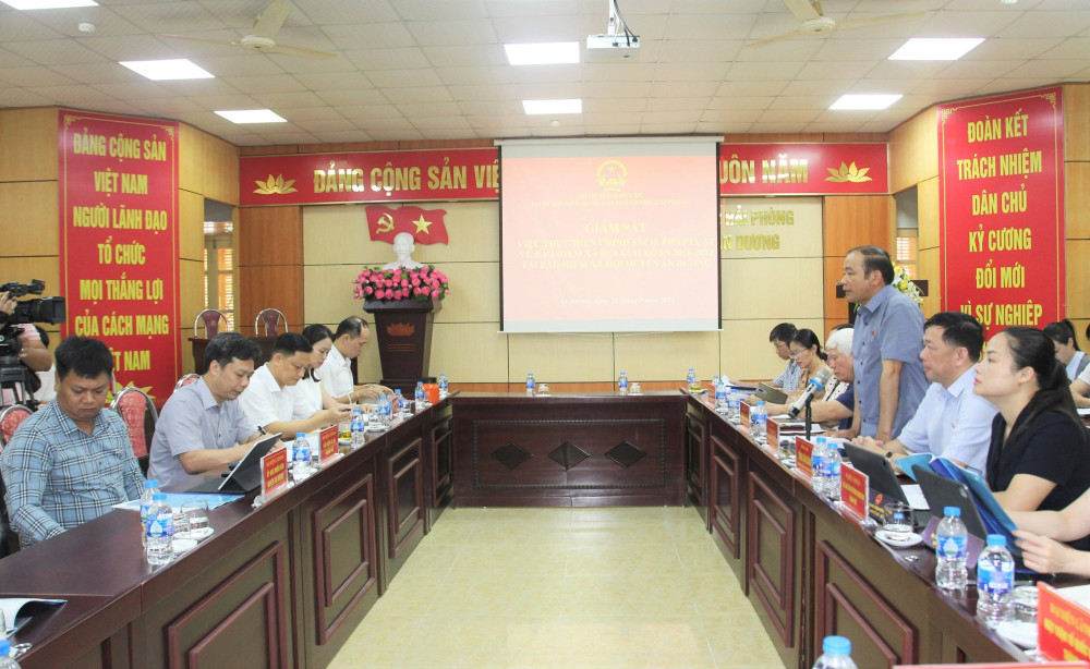Sáng 28/7, Đoàn đại biểu Quốc hội thành phố giám sát việc thực hiện chính sách, pháp luật về bảo hiểm xã hội (BHXH) giai đoạn 2016-2022 tại BHXH huyện An Dương. Phó Trưởng Đoàn đại biểu Quốc hội chuyên trách thành phố Lã Thanh Tân, Trưởng đoàn giám sát chủ trì cuộc làm việc.