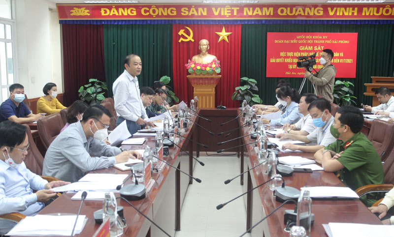 Sáng 22/3, Đoàn đại biểu Quốc hội thành phố Hải Phòng tổ chức giám sát chuyên đề “việc thực hiện pháp luật về tiếp công dân và giải quyết khiếu nại, tố cáo từ ngày 1/7/2016 đến 1/7/2021” tại UBND quận Hải An.