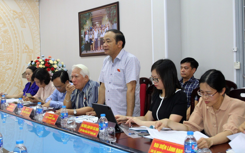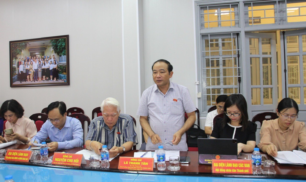 Phó Trưởng Đoàn đại biểu Quốc hội chuyên trách thành phố Lã Thanh Tân, Trưởng Đoàn giám sát chủ trì cuộc làm việc. Cùng dự có đại biểu Quốc hội Nguyễn Chu Hồi, đại diện Ban Pháp chế HĐND thành phố và các sở, ngành liên quan.