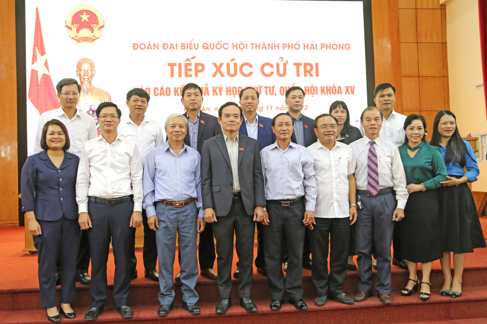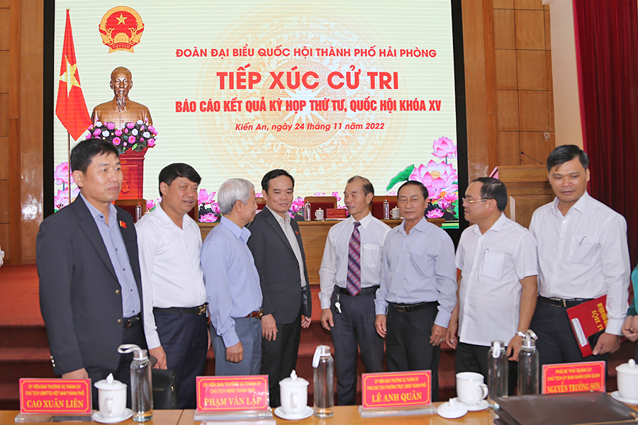 Chiều 24/11, đồng chí Trần Lưu Quang, Ủy viên Trung ương Đảng, Bí thư Thành ủy, Trưởng Đoàn đại biểu Quốc hội thành phố Hải Phòng cùng các đại biểu Quốc hội: Nguyễn Đức Dũng, Thiếu tướng, Phó Tư lệnh kiêm Tham mưu trưởng Quân khu 3; Vũ Thanh Chương, Ủy viên Ban Thường vụ Thành ủy, Thiếu tướng, Giám đốc Công an thành phố Hải Phòng; Tống Văn Băng, Trưởng ban Tổ chức Tổng Liên đoàn Lao động Việt Nam tiếp xúc cử tri quận Kiến An báo cáo kết quả kỳ họp thứ tư, Quốc hội khóa XV.