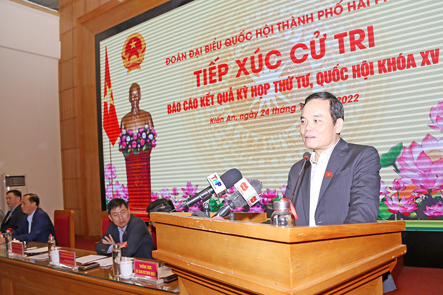 Phát biểu tại cuộc tiếp xúc cử tri, đồng chí Trần Lưu Quang, Ủy viên Trung ương Đảng, Bí thư Thành ủy, Trưởng Đoàn đại biểu Quốc hội thành phố Hải Phòng thông báo khái quát tình hình phát triển kinh tế-xã hội của thành phố năm 2022, những thuận lợi, khó khăn trong việc thực hiện nhiệm vụ phát triển kinh tế-xã hội năm 2023. Đối với các kiến nghị của cử tri quận Kiến An, Đoàn đại biểu Quốc hội thành phố sẽ tổng hợp, báo cáo cơ quan có thẩm quyền xem xét, giải quyết./.