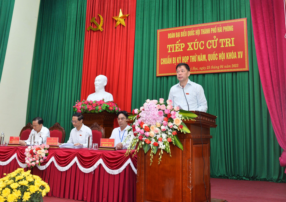 Chuẩn bị kỳ họp thứ 5 Quốc hội khóa XV. Ngày 24/4, Đoàn Đại biểu Quốc hội (ĐBQH) Hải Phòng gồm các đồng chí: Đỗ Mạnh Hiến, Phó Bí thư Thường trực Thành ủy; Thiếu tướng Nguyễn Đức Dũng, Tư lệnh kiêm Tham mưu trưởng Quân khu 3; Tống Văn Băng, Trưởng Ban Tổ chức, Tổng Liên đoàn lao động Việt Nam tiếp xúc cử tri huyện Vĩnh Bảo và quận Hải An. Cùng dự tiếp xúc có Phó Chủ tịch UBND thành phố Nguyễn Đức Thọ, Phó Chủ tịch HĐND thành phố Bùi Đức Quang.