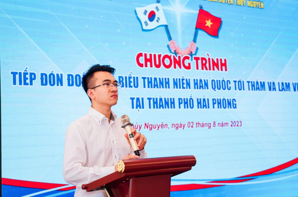 Tiếp đón Đoàn đại biểu thanh niên Hàn Quốc có các đồng chí: Vương Toàn Thu Thủy, Bí thư Thành đoàn, Chủ tịch Hội LHTN Việt Nam thành phố; Lê Khắc Nguyên Anh, Phó Bí thư Thường trực Thành đoàn, Chủ tịch Hội Sinh viên Việt Nam thành phố; đại diện lãnh đạo, cán bộ Ban Quốc tế Trung ương Đoàn; đại diện lãnh đạo huyện Thủy Nguyên, quận Dương Kinh.