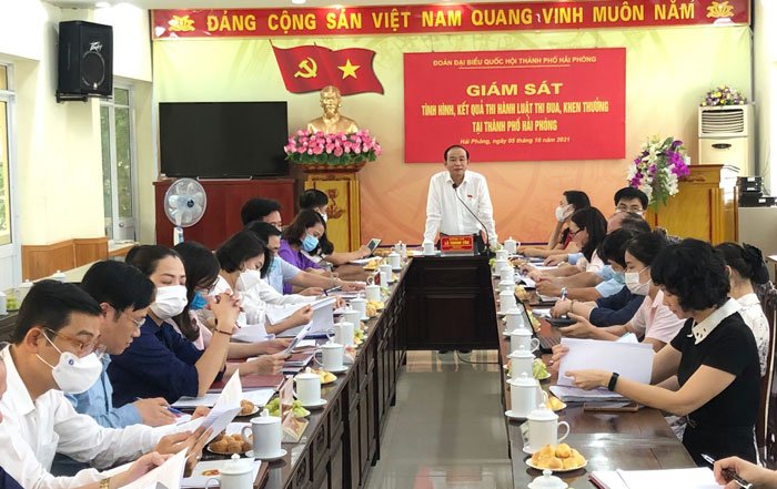 Chiều 5/10, Đoàn ĐBQH thành phố Hải Phòng do đồng chí Lã Thanh Tân, Phó Trưởng Đoàn ĐBQH chuyên trách làm Trưởng đoàn, cùng với đồng chí Tống Văn Băng, Chủ tịch Liên đoàn Lao động thành phố, đại biểu Quốc hội giám sát về tình hình, kết quả thi hành Luật Thi đua, khen thưởng trên địa bàn thành phố (giai đoạn từ 1/1/2016 đến 30/6/2021) tại Sở Nội vụ. Cùng đi có đại diện lãnh đạo các sở, ngành, đơn vị, địa phương liên quan.