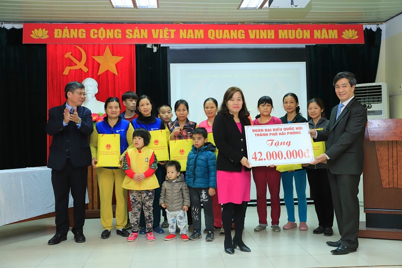 Đoàn đã đến thăm, tặng quà chúc tết tạiTrung tâm giáo dục lao động Thanh Xuân; Làng nuôi dạy trẻ mồ côi Hoa Phượng và Làng trẻ em SOS thành phố và một số gia đình chính sách, nạn nhân chất độc da cam trên địa bàn quận Lê Chân.