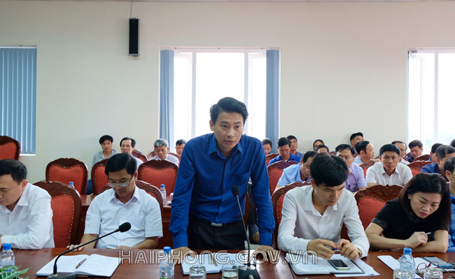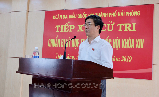 Phó Trưởng Đoàn ĐBQH Hải Phòng Bùi Thanh Tùng phát biểu tại buổi tiếp xúc