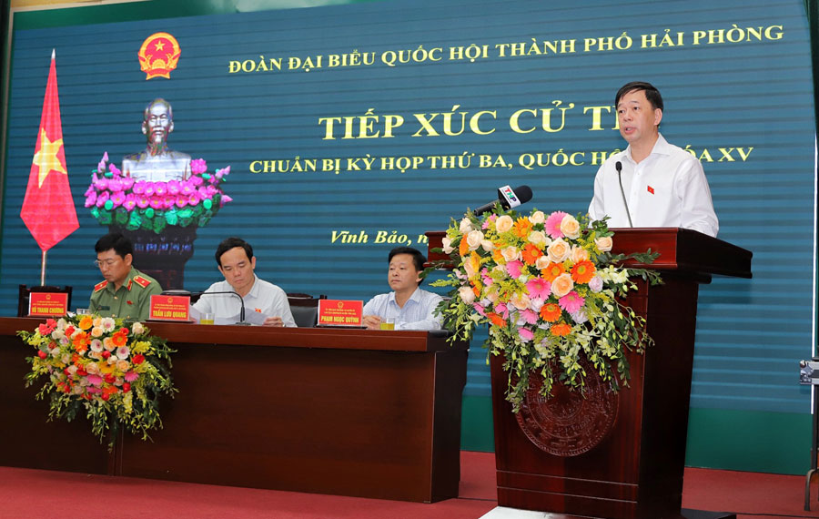 Cử tri cũng được nghe báo cáo về hoạt động của Đoàn ĐBQH, các vị ĐBQB thành phố Hải Phòng từ sau Kỳ họp thứ 2 đến nay, các hoạt động chuẩn bị cho Kỳ họp thứ Ba và ý kiến của cử tri được các cơ quan Trung ương trả lời.