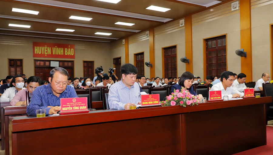 Thay mặt Đoàn ĐBQH thành phố, đồng chí Trần Lưu Quang, Bí thư Thành ủy, Trưởng Đoàn ĐBQH thành phố Hải Phòng đã trả lời trực tiếp một số vấn đề cử tri huyện Vĩnh Bảo quan tâm; đồng thời cảm ơn sự ủng hộ của cử tri huyện Vĩnh Bảo. Đồng chí ghi nhận các ý kiến, kiến nghị của cử tri huyện sát với thực tế chung của đất nước, thành phố; Đoàn ĐBQH thành phố sẽ tiếp thu đầy đủ những ý kiến phản ánh, kiến nghị của cử tri để phản ánh tới Quốc hội, Chính phủ, các Bộ, ngành Trung ương xem xét, giải quyết.