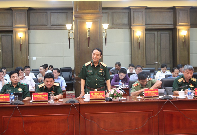 Thượng tướng Võ Trọng Việt, Ủy viên BCH Trung ương Đảng, Ủy viên Thường vụ Quốc hội, Chủ nhiệm Ủy ban Quốc phòng – An ninh của Quốc hội phát biểu tại buổi làm việc.