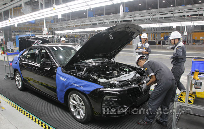 Tổ hợp nhà máy sản xuất ô tô, xe máy điện VinFast được triển khai trên khu đất rộng 335 ha tại khu công nghiệp Đình Vũ – Cát Hải. Tổ hợp gồm có: nhà điều hành, khu nhà máy sản xuất xe máy điện, khu nhà máy sản xuất ô tô, khu nhà máy sản xuất xe buýt điện, khu công nghiệp phụ trợ, trung tâm đào tạo và Viện Nghiên cứu và Phát triển. Với công suất thiết kế ô tô giai đoạn 1 là 250.000 xe/ năm, giai đoạn 2 là 500.000 xe/năm; xe buýt điện là 3.000 xe/năm; xe máy điện giai đoạn 1 là 250.000 xe/năm, tăng lên 500.000 xe trong giai đoạn 2 và có thể mở rộng 1 triệu xe/năm.