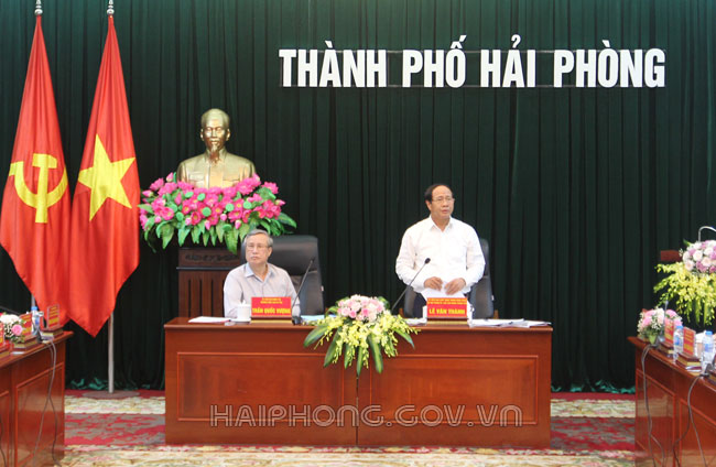 Phát biểu tại buổi làm việc, đồng chí Trần Quốc Vượng, Ủy viên Bộ Chính trị, Thường trực Ban Bí thư ghi nhận và đánh giá cao những nỗ lực phấn đấu và những kết quả đạt được của Đảng bộ và nhân dân thành phố Hải Phòng qua 10 năm thực hiện Cương lĩnh xây dựng đất nước trong thời kỳ quá độ lên chủ nghĩa xã hội (bổ sung, phát triển năm 2011); Nghị quyết Đại hội XII của Đảng. Thành uỷ Hải Phòng đã vận dụng sáng tạo nhiều chủ trương, chính sách của Đảng và Nhà nước, lãnh đạo chínhquyền và nhân dân thành phố phấn đấu đạt nhiều kết quả tích cực và toàn diện.Tốc độ tăng trưởng kinh tế khá cao và liên tục, GRDP giai đoạn 2016 – 2018 tăng bình quân 14,57%, gấp 2,17 lần bình quân chung cả nước. GRDP bình quân đầu người tăng từ 3.271,6 USD (năm 2016) lên 4.292 USD năm 2018. Cơ cấu kinh tế chuyển dịch tích cực theo hướng giảm tỉ trọng ngành nông, lâm nghiệp và thuỷ sản, tăng tỉ trọng ngành dịch vụ và công nghiệp, xây dựng. Tổng thu ngân sách nhà nước trên địa bàn thành phố tăng mạnh (năm 2018 tăng 13,7%); tổng vốn đầu tư toàn xã hội năm 2018 đạt 100.543,3 tỉ đồng, tăng 33,54%; kim ngạch xuất khẩu năm 2018 đạt 8,19 tỉ USD, tăng bình quân 25,55%/năm; đến hết năm 2018 có 89 xã đạt chuẩn nông thôn mới (bằng 64,03% số xã). Môi trường đầu tư được cải thiện mạnh mẽ, tổng vốn đầu tư FDI trong 3 năm đạt trên 6,8 tỉ USD, luôn ở tốp dẫn đầu cả nước. Kết cấu hạ tầng kinh tế – xã hội có bước phát triển đột phá. Thu nhập của nhân dân được nâng cao, đời sống vật chất và tinh thần được cải thiện,an sinh xã hội và phúc lợi xã hội được bảo đảm. Các lĩnh vực văn hoá – xã hội,giáo dục – đào tạo, khoa học – công nghệ đạt được nhiều kết quả quan trọng.Quốc phòng – an ninh được giữ vững, trật tự an toàn xã hội được tăng cường. Công tác xây dựng, chỉnh đốn Đảng, xây dựng hệ thống chính trị đã được cấp uỷ cáccấp tập trung lãnh đạo, chỉ đạo triển khai thực hiện nghiêm túc theo đúng chỉ đạo, hướng dẫn của Trung ương như sắp xếp tổ chức bộ máy, tinh giản biên chế,cơ cấu lại đội ngũ cán bộ, công chức, xây dựng đội ngũ cán bộ các cấp về phẩm chất, năng lực, uy tín, đáp ứng yêu cầu tình hình mới; tăng cường vai trò nêu gương của cán bộ, đảng viên; tăng cường công tác thanh tra, kiểm tra, giám sát,đấu tranh phòng, chống tham nhũng, lãng phí, “tự diễn biến”, “tự chuyển hoá” trong nội bộ, bước đầu tạo những chuyển biến tích cực.Đồng chí Trần Quốc Vượng cũng chỉ ra những hạn chế của thành phố trên một số lĩnh vực và gợi mở những vấn đề thành phố cần tập trung lãnh đạo, chỉ đạo trong những năm tới để bảo đảm thực hiện thắng lợi Nghị quyết Đại hội đảng bộ các cấp, chuẩn bị tốt cho Đại hội Đảng bộ thành phố nhiệm kỳ tới và Đại hội lần thứ XIII của Đảng. Đoàn công tác cũng ghi nhận những kiến nghị của thành phố Hải Phòng và sẽ tổng hợp để báo cáo Tiểu ban Văn kiện Đại hội XIII.