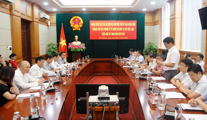 Tại cuộc làm việc, Phó Chủ tịch Thường trực UBND thành phố Nguyễn Xuân Bình tiếp thu các ý kiến chỉ đạo, góp ý của Đoàn công tác và mong muốn Bộ Nội vụ tiếp tục quan tâm, hỗ trợ thành phố Hải Phòng trong việc thực hiện tổ chức bộ máy, cơ cấu vị trí việc làm, biên chế và tinh giản biên chế phù hợp với điều kiện, yêu cầu phát triển kinh tế – xã hội của thành phố thời gian tới.