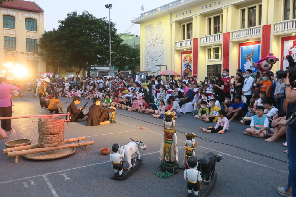 Chiều 1/5, tại Nhà trưng bày Triển lãm thành phố (sau Tượng đài Nữ tướng Lê Chân), Đoàn Nghệ thuật Múa rối Hải Phòng biểu diễn vở rối “Quê Việt” phục vụ Nhân dân, du khách, đặc biệt là các khán giả nhí.