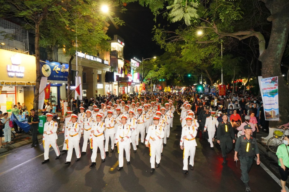 Tối 12/5, tại khu vực Nhà hát thành phố, Đoàn Nghi lễ Công an nhân dân thuộc Bộ Tư lệnh Cảnh sát cơ động, Bộ Công an tổ chức biểu diễn chương trình nhạc kèn diễu hành đường phố nhân kỷ niệm 68 năm Giải phóng Hải Phòng (13/5/1955-13/5/2023).