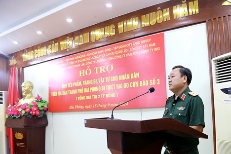 Tại buổi trao tặng, Đoàn Quân Khu 7 (gồm Tập đoàn Donacoop; Tập đoàn Rạng Đông, Công ty Thanh Lễ; Tổng Công ty Becammex IDC; Công ty Cổ phần Cao su Xuân Lộc; Công ty Tây Nam; Công ty Đông Hải: Chi hội Thiện Nhân; Công ty Nhân Tâm; Công ty Lagrico; Tổng Công ty Thái Sơn; Công ty IMG) hỗ trợ nhu yếu phẩm, trang thiết bị, vật tư với tổng giá trị 02 tỷ đồng giúp Nhân dân trên địa bàn thành phố Hải Phòng khắc phục thiệt hại do Bão số 3.