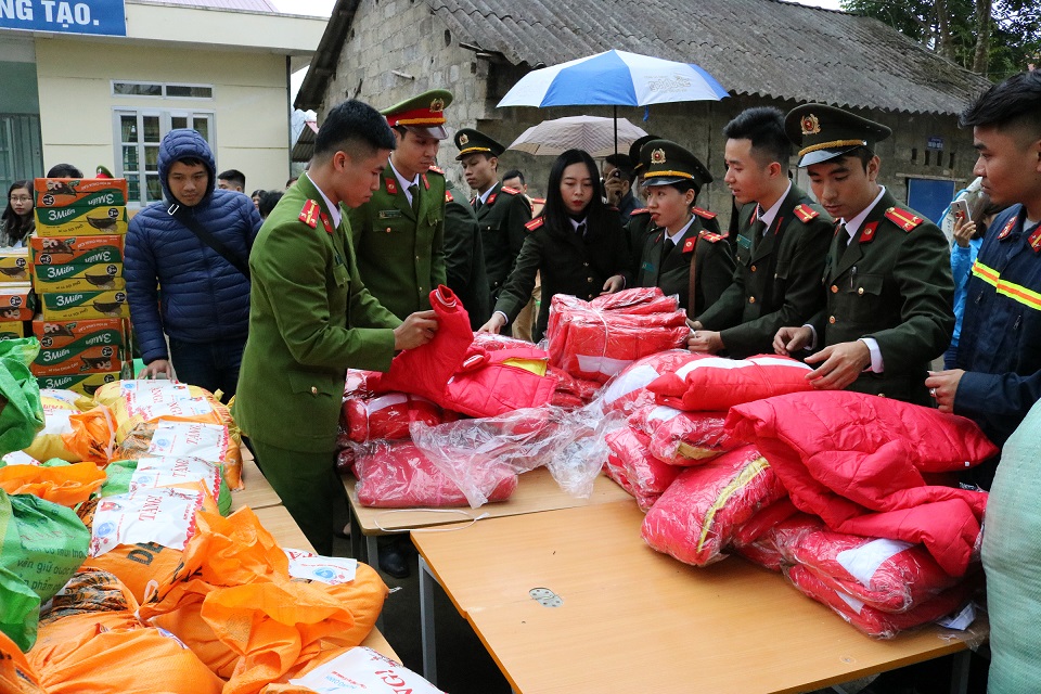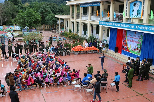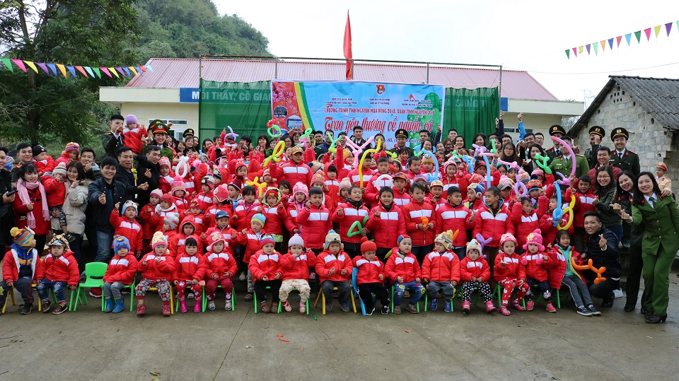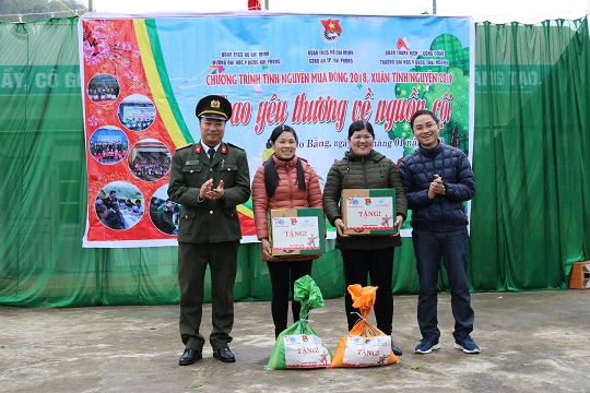 Tại Trường Tiểu học Nà Giàng, xã Phù Ngọc, huyện Hà Quảng, tỉnh Cao bằng, đoàn tình nguyện cũng đã trao tặng các thầy, cô giáo 1 bộ loa di động, 89 thùng mì tôm, 200kg gạo, cùng 120 bộ áo và tất ấm cho các em học sinh.