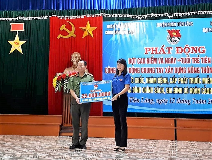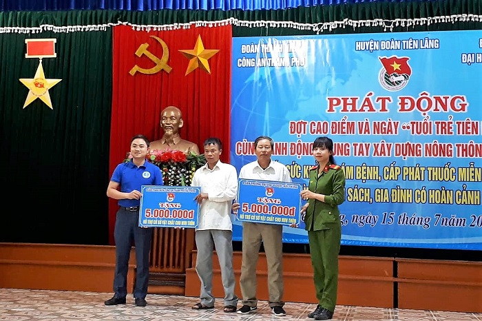 Ngày 15-7, Đoàn thanh niên CATP phối hợp với Đoàn trường Đại học Y dược Hải Phòng, Huyện đoàn Tiên Lãng tổ chức chương trình Khám bệnh, phát thuốc miễn phí và tặng quà cho người thuộc diện chính sách, người có hoàn cảnh khó khăn tại 2 xã Kiến Thiết, Quang Phục, huyện Tiên Lãng.