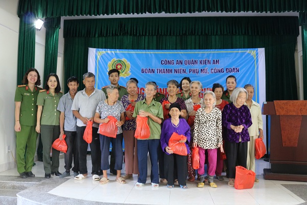 Sáng 22-10, Đoàn Thanh niên, Hội Phụ nữ, Công đoàn CAQ Kiến An tổ chức chương trình thiện nguyện tại Trung tâm nuôi dưỡng, bảo trợ xã hội thành phố. Đến dự có lãnh đạo các đội nghiệp vụ Công an quận, phía Trung tâm có các đồng chí: Phạm Văn Kiên – Giám đốc Trung tâm, Phạm Thu Hà – Phó Giám đốc Trung tâm cùng dự hiện diện của gần 100 cụ cao tuổi đang được nuôi dưỡng, chăm sóc tại Trung tâm.