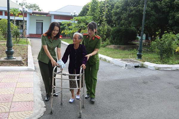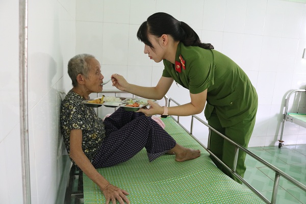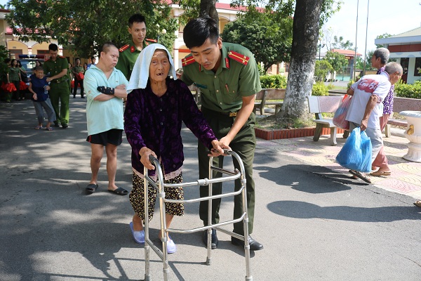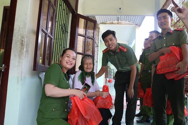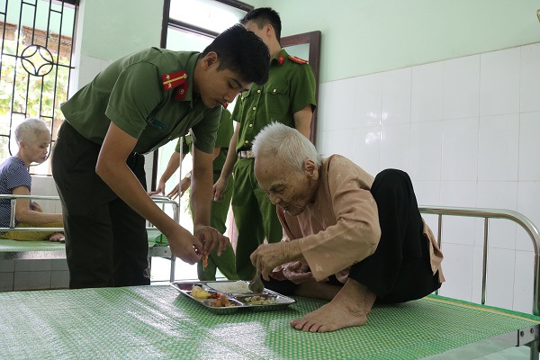 Sau màn văn nghệ chào mừng với những tiếp mục đặc sắc, chân thành, mộc mạc và lắng đọng cảm xúc, đoàn công tác gồm hơn 20 cán bộ, hội viên, đoàn viên CAQ đã tiến hành thăm hỏi, động viên, trao tặng những phần quà ý nghĩa như: gạo, sữa, tất… tới tận phòng cho 96 cụ là những người yếu thế, tuổi cao, khuyết tật, không nơi nương tựa…, đang được Trung tâm nuôi dưỡng, chăm sóc. Cùng với đó, các thành viên trong đoàn đã xuống bếp, hỗ trợ Trung tâm chuẩn bị, phát cơm trưa cho các cụ.