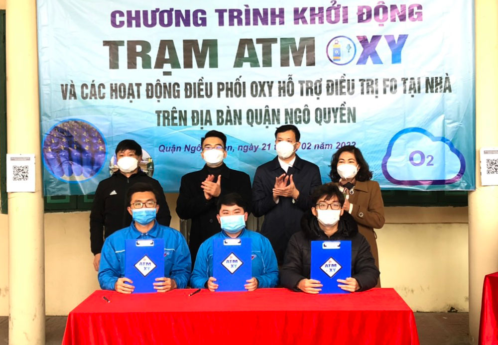 Sáng 21/2, Đoàn Thanh niên – Hội LHTN Việt Nam quận Ngô Quyền phối hợp với Công ty TNHH khí công nghiệp Việt Nam tổ chức “Chương trình khởi động mô hình ATM OXY và các hoạt động điều phối oxy hỗ trợ điều trị F0 tại nhà trên địa bàn quận Ngô Quyền”.