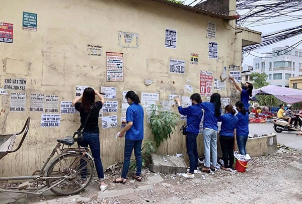 Đoàn Thanh niên tham gia xóa quảng cáo rao vặt không phép trên bờ tường, gốc cây, cột điện