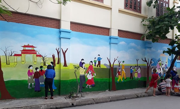 Đoàn Thanh niên vẽ tranh tường tuyên truyền bảo vệ môi trường, ứng phó với biến đổi khí hậu