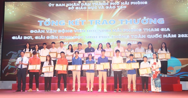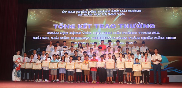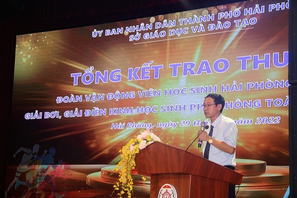 Chiều 29/7, Sở Giáo dục và Đào tạo Hải Phòng tổ chức Lễ tổng kết và trao thưởng cho Đoàn vận động viên học sinh Hải Phòng tham gia Giải Bơi, Giải Điền Kinh học sinh phổ thông toàn quốc năm 2022.