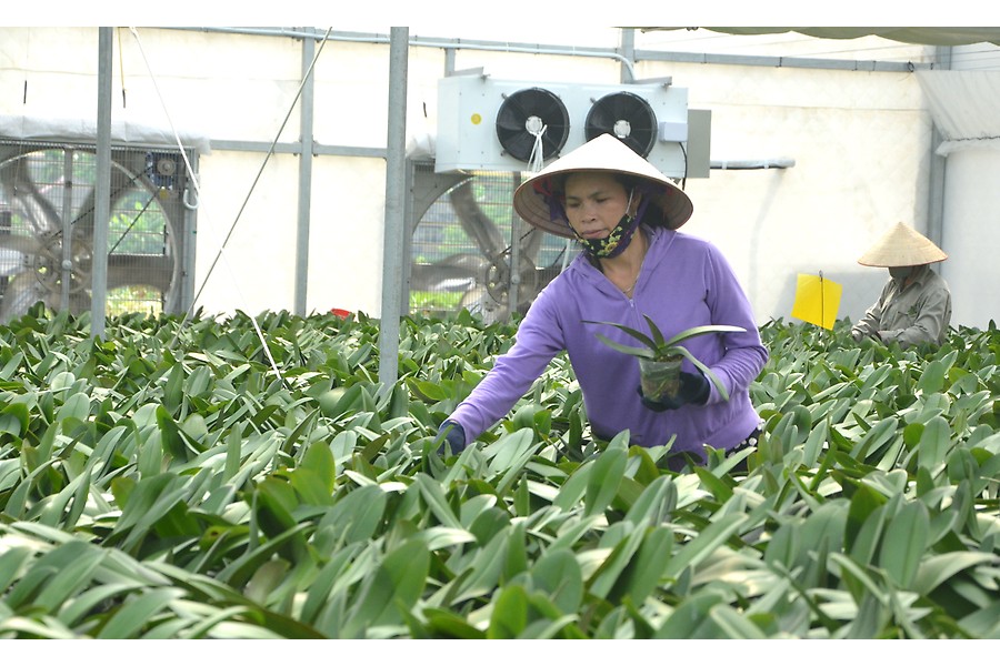 Mô hình sản xuất hoa công nghệ cao của Công ty Châu Giang.